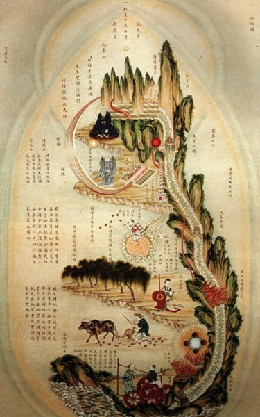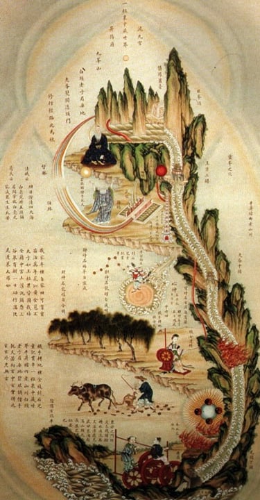 In traditional Daoist alchemy (內丹 Nèidān), this process transforms the Three Treasures (三寶 Sānbǎo) — Jing (精), Qi (氣), and Shen (神) — restoring the body to its natural state of harmony.